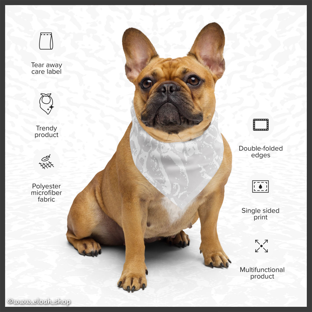 Get ready to make a statement with this all-over print bandana. Mix up your outfits by using this as a headband, necktie, or armband. In fact, why not get a second bandana to match your pet? Grab a few and hit the streets in style!