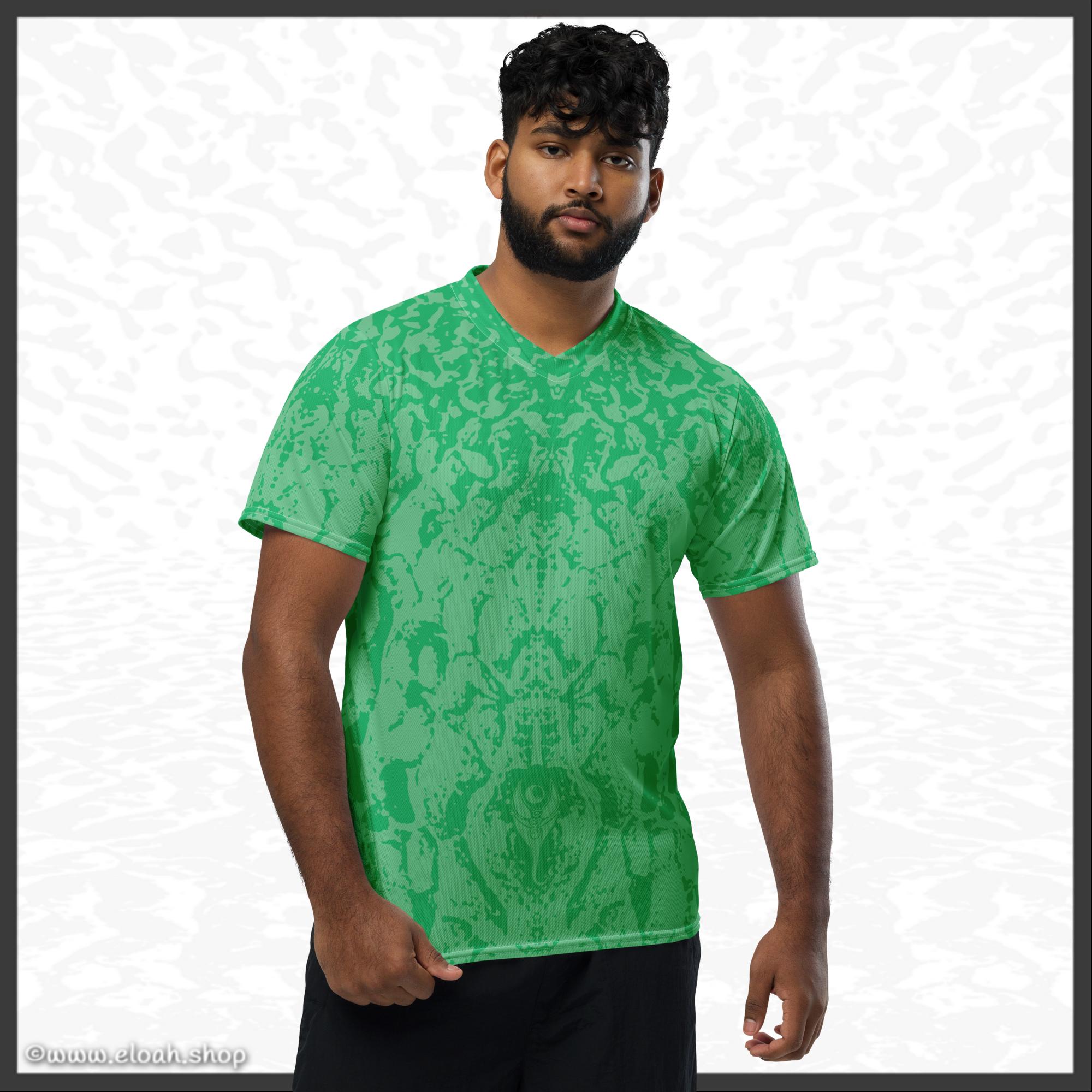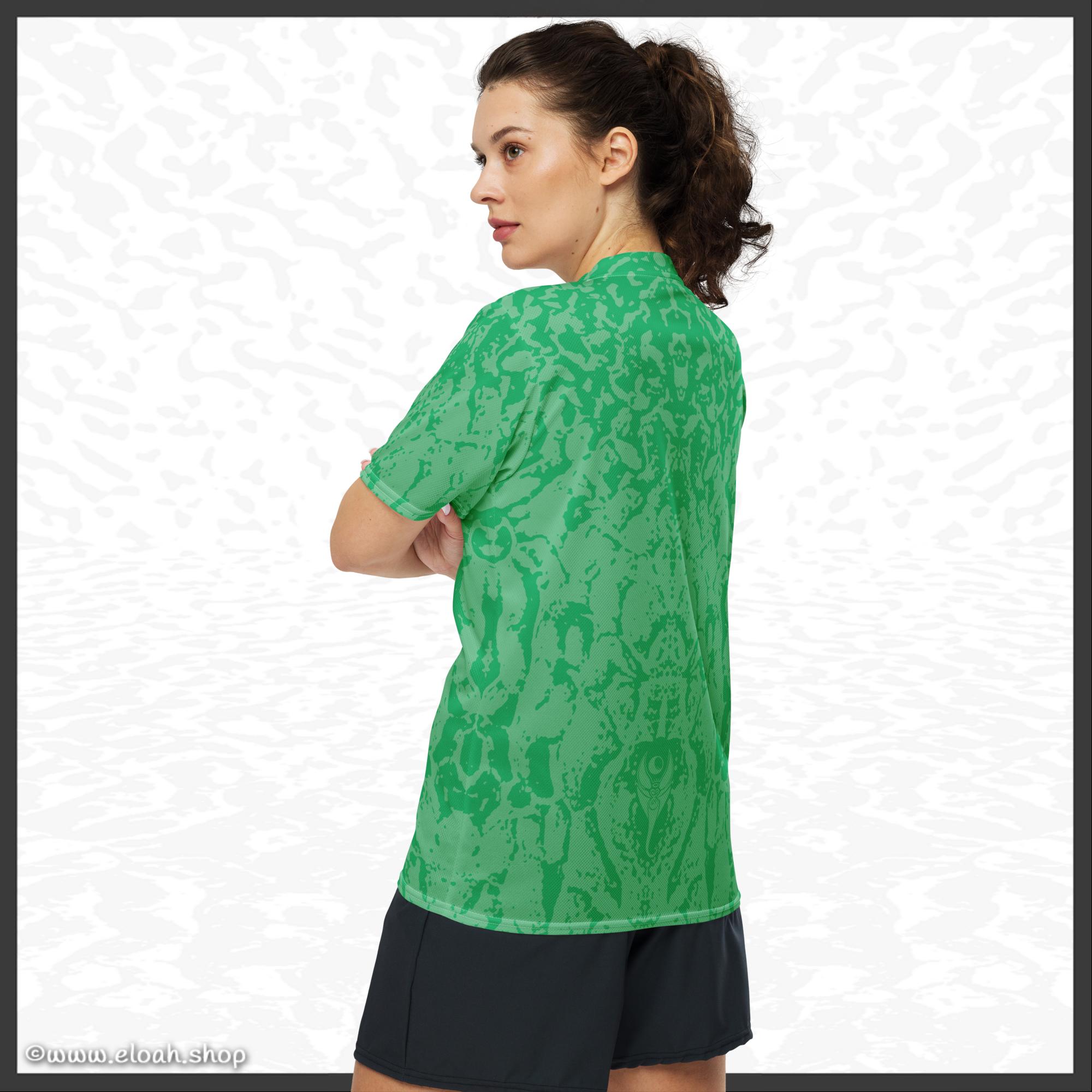 Looking for the perfect sports jersey? We have you covered—made of 100% recycled polyester fabric, this shirt is breathable, moisture-wicking, and has a double-layered v-neck collar that creates a premium look.