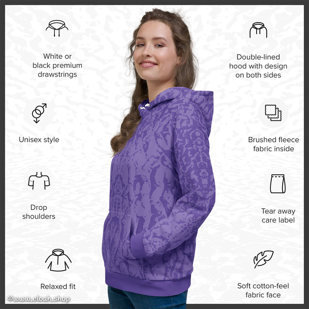This comfy unisex hoodie has a soft outside with a vibrant print and an even softer brushed fleece inside. The hoodie has a relaxed fit, and it’s perfect for wrapping yourself into on a chilly evening.