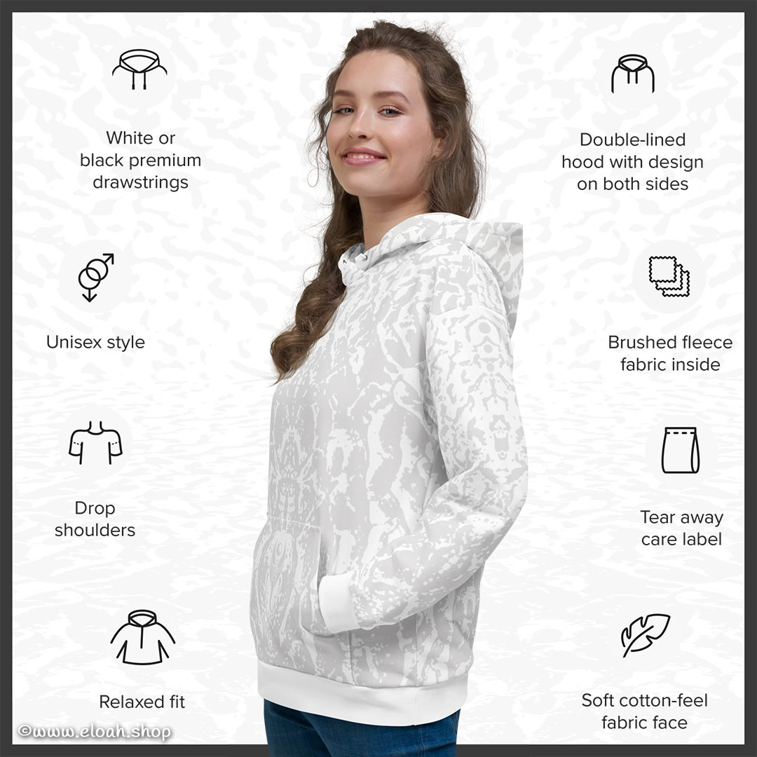 This comfy unisex hoodie has a soft outside with a vibrant print and an even softer brushed fleece inside. The hoodie has a relaxed fit, and it’s perfect for wrapping yourself into on a chilly evening.