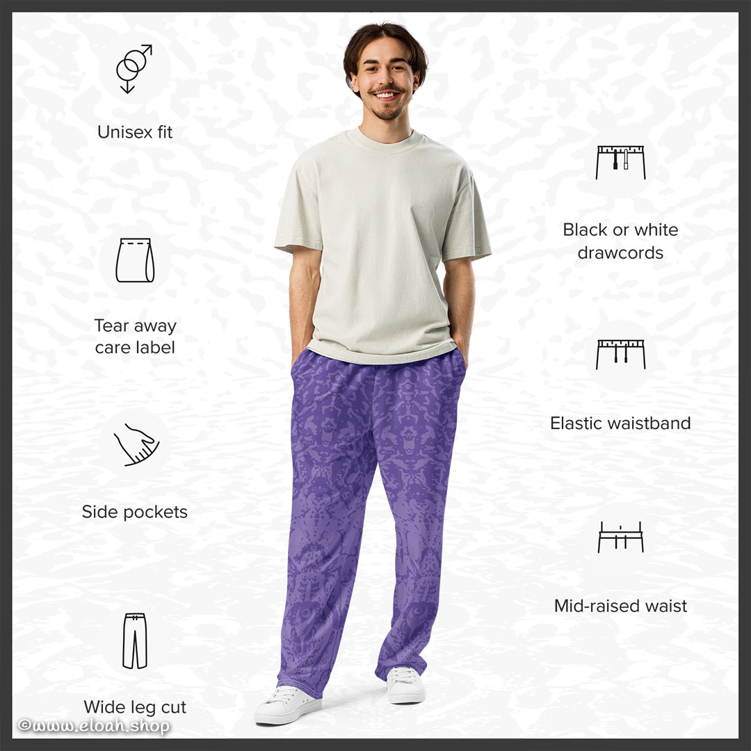 Rediscover ’90s fashion with these all-over print wide-leg joggers. Ideal for athleisure looks and casual outings, they offer a unisex fit and handy side pockets.