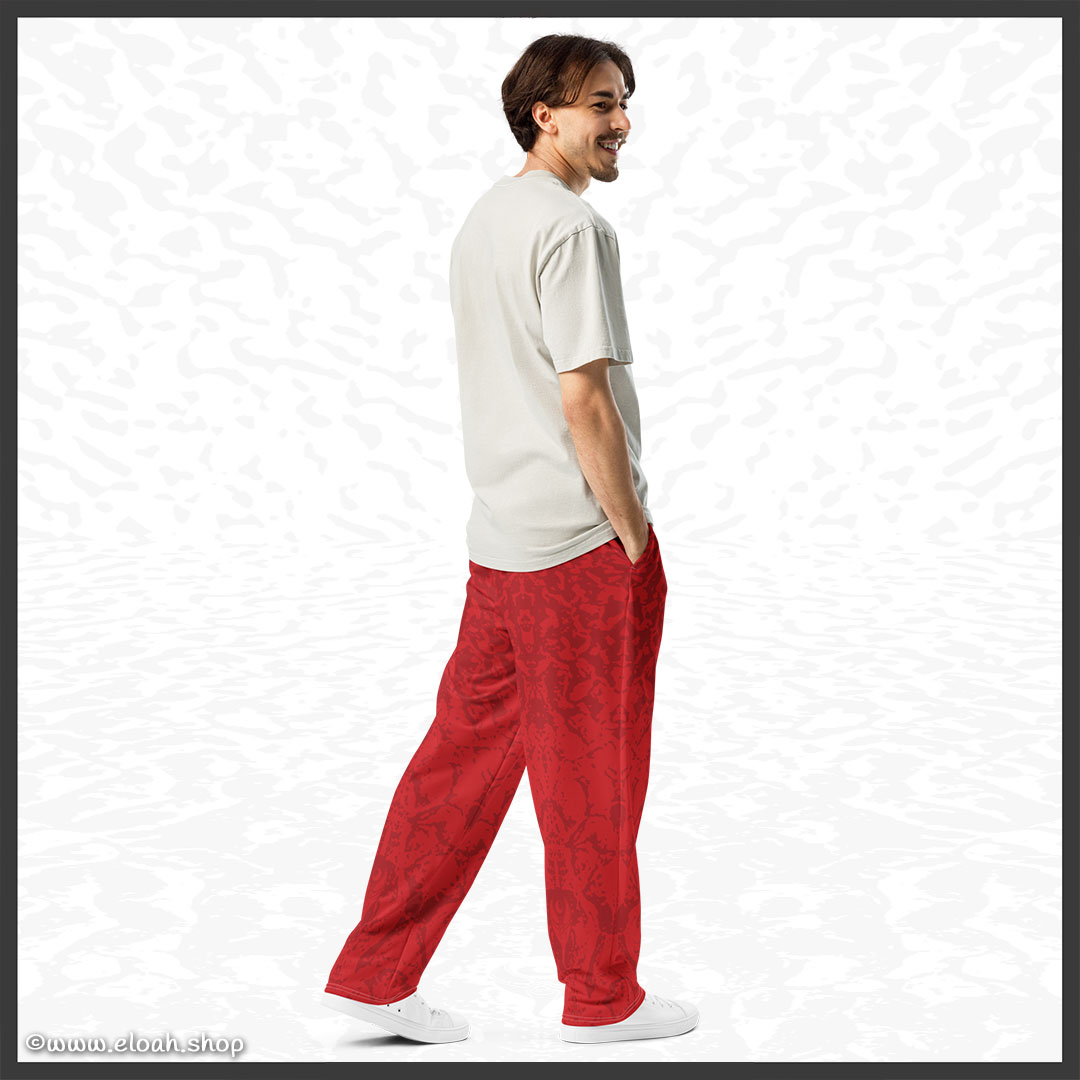 Rediscover ’90s fashion with these all-over print wide-leg joggers. Ideal for athleisure looks and casual outings, they offer a unisex fit and handy side pockets.